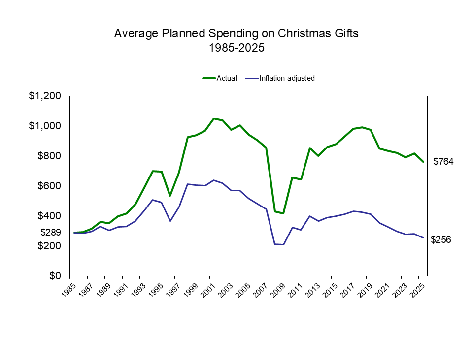 have already started their holiday shopping is $783, compared to $879 in 2024, $921